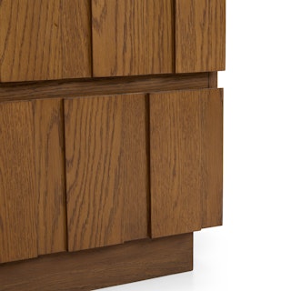 Marko knows it's handsome: it commands attention and will be the bold centerpiece your bedroom craves. The intricately carved solid wood drawer fronts, ample storage, soft-close drawers, and softened edges make up a functional, sophisticated, and handsome piece of furniture.