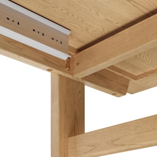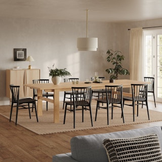 The traditional trestle-style base dining table minus "traditional values." A sturdy time-tested design, Gina is updated for the modern day dinner party needs with an extendable leaf that drops in when you need. Comfortable for up to 8 guests, you can have the whole family over — or not!