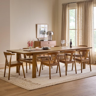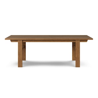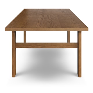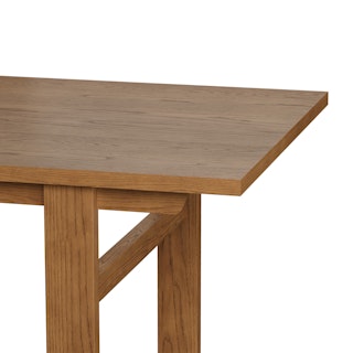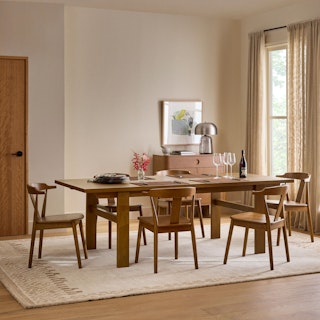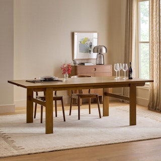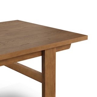 The traditional trestle-style base dining table minus "traditional values." A sturdy time-tested design, Gina is updated for the modern day dinner party needs with an extendable leaf that drops in when you need. Comfortable for up to 8 guests, you can have the whole family over — or not!