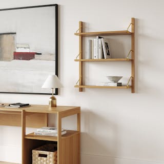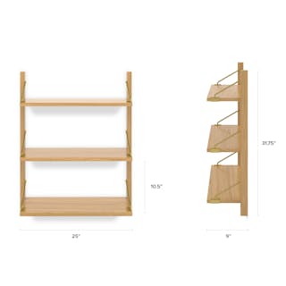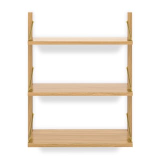 Functional and fashionable? Can you have both? The Stark collection says you can. Featuring three shelves supported by elegant golden brackets and solid wood supports, each shelf can hold an impressive 44 lbs. With a design that enables limitless expansion, the Stark collection lets you tailor your storage to your exact needs.