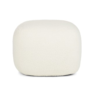 Upholstered in a soft, non-absorptive shearling fabric. Shearling is an excellent choice for those who want an easy-to-care-for, style-forward pouf