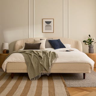 You know those big teddy bears you cuddled with as a kid? The Kayra is like that, except less weird to curl into as an adult. Something about its super plush bouclé fabric, sculpted headboard, and curvy proportions make this bed the stuff that childhood dreams are made of.