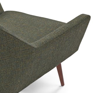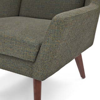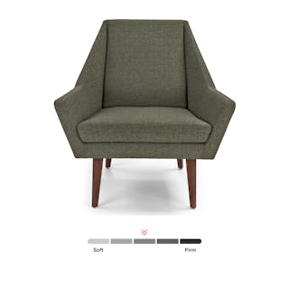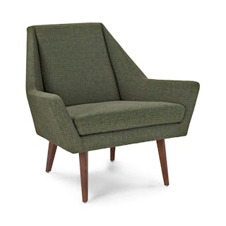Jetsons chic. This is a chair that knows its angles. With vintage-inspired tweed fabric and solid wood legs, the Angle chair has a wide, accommodating seat and an angled back. Perfect for crossed-leg contemplation, or even a sneaky nap.