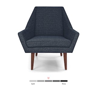Jetsons chic. This is a chair that knows its angles. With vintage-inspired tweed fabric and solid wood legs, the Angle chair has a wide, accommodating seat and an angled back. Perfect for crossed-leg contemplation, or even a sneaky nap.
