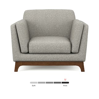 Take a load off. Intentionally designed to sit low to the ground, our Ceni pieces are a contemporary take on a vintage silhouette. Designed with loose cushions, track arm rests, and a solid wood base, the Ceni features a firmly padded back cushion and medium-firm seat composed of sinuous springs and foam for a deep-seated lounge experience. Throw in an oversize-ottoman, and you'll find that everyone has the legroom they need for movie night.