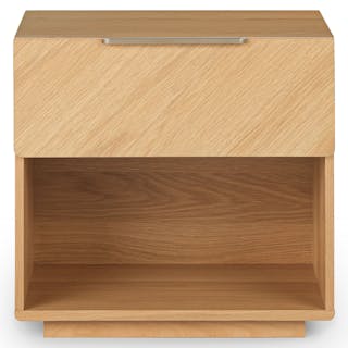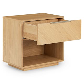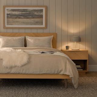 The Nera King Bed and 1-Drawer Nightstand come together in this airy and serene duo that’s as beautiful as it is practical. Unique chevron wood grain provides a natural focal point, while the nightstands boast soft-close drawers and spacious shelves. Not to brag, but we’ve basically thought of everything.