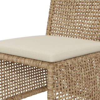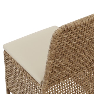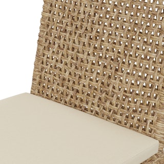 The best kind of fair-weather friend. With synthetic all-weather wicker, the Robbi Dining Chair just wants to spend the summer outside, basking in the sun and soaking up the happy vibes of your al fresco dinners. The open-weave wicker feels visually light and relaxed, and the thickly stuffed, weather-resistant cushion is the perfect spot to rest after a long day of playing in the yard.