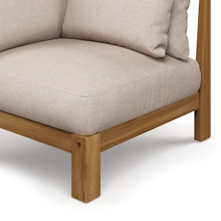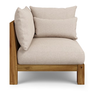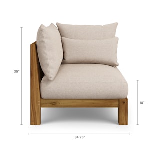 Friends in low places? With the help of the Cove collection, that will be your deck this summer. Casual and elegant, the Cove Corner Module combines simple framing with interesting details, like its plinth base and sharply tailored cushions. Designed to be low and loungey, it manages to feel pulled together and relaxed at the same time.