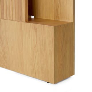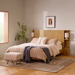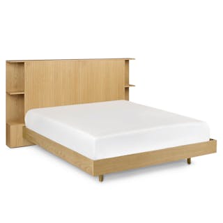 Make space with the Kouva bedroom bundle. With its unique solid oak tambour design and modern open shelving, the Kouva is ready to house your book collection, your empty water glasses, your alarm clock, and a midnight snack. And the Basi? It's just happy to hold your mattress.