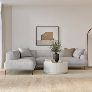 Designed to keep you off your toes. The Abisko corner sectional can’t wait to be the reason you procrastinate. Dishes in the sink? Manuscript to edit? Kids to pick-up from school? They can wait. You’re busy catching up on this month’s book club pick while savoring a moment in your Abisko. With Quartz White fabric and titanium-finished legs, this sectional works as well in your living room as a luxury hotel lobby.