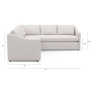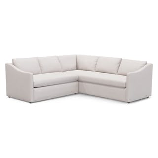 A minimal look with maximum impact… and maximum seating area. The Landry marries laid back comfort with elegant details to produce a sectional that is as comfortable hosting movie night as it is a cocktail hour. Sloping sleigh-style arms and clean straight lines make it simple to pair this sectional with many different styles. Try it with a warm white backdrop, against a wildly patterned rug, or draped with your favorite blanket. The Landry is easygoing style at its best.