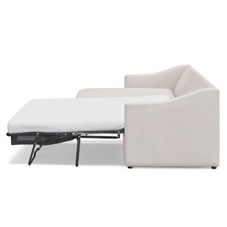 A minimal look with maximum impact... and maximum function. The Landry Sofa Bed marries laid back comfort with elegant details to produce a sofa that is as comfortable hosting movie night as it is your in-laws. Sloping sleigh-style arms and clean, straight lines make it simple to pair this sofa with many styles. With a spacious chest hidden below its chaise seat, and pull-out memory foam mattress, this sofa bed is compact, functional, and comfortable. Almost too comfortable.