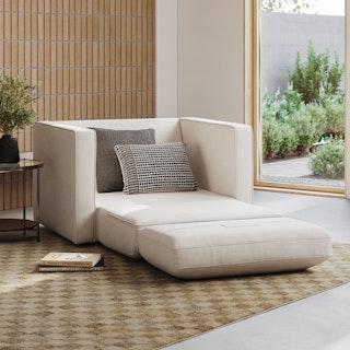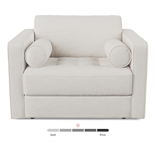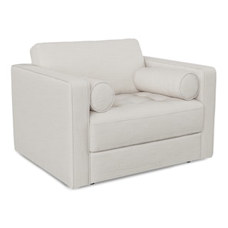 You know what they say: if you can't beat 'em, make the extremely cozy lounge chair into a sleeper lounge. People kept falling asleep on the Sven, so we've cut out the middle man and made the Sven Sleeper Lounge Chair. A tufted seat, precise piping, and round bolster pillows, plus! Plus! A fold out mattress so you can take your Sven lounge into a Sven nap. Stick that in your living room and sleep on it.