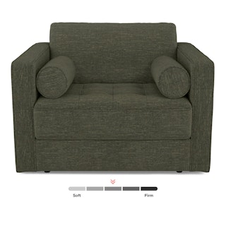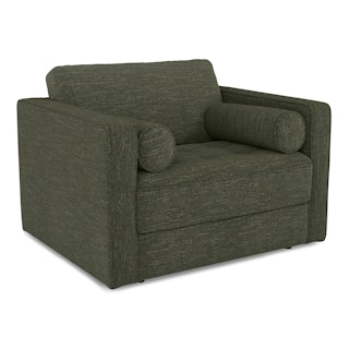 You know what they say: if you can't beat 'em, make the extremely cozy lounge chair into a sleeper lounge. People kept falling asleep on the Sven, so we've cut out the middle man and made the Sven Sleeper Lounge Chair. A tufted seat, precise piping, and round bolster pillows, plus! Plus! A fold out mattress so you can take your Sven lounge into a Sven nap. Stick that in your living room and sleep on it.