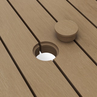 - Umbrella hole with removable cap in center of tabletop