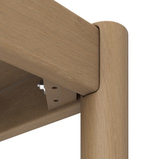 - Rounded legs with a soft, rounded wood profile tabletop