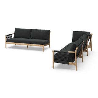 More than just a pretty base. The Rosa is built from solid eucalyptus wood, with dowelled legs and bracing. And the cushions — not only are they high-density foam, but they are also upholstered with UV- and water-resistant fabric. Adaptable joinery helps you adjust Rosa’s configuration to best fit your space. With airy criss-cross woven details, Rosa is as pretty as she is comfortable. And it is really, really comfortable.