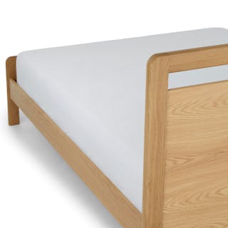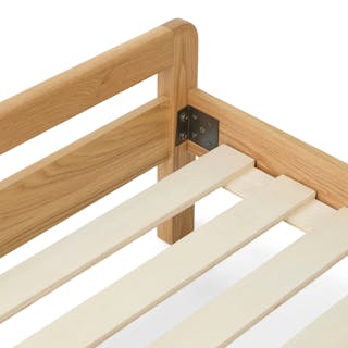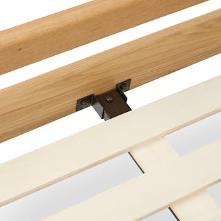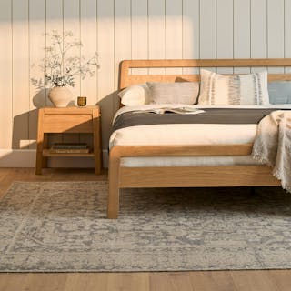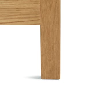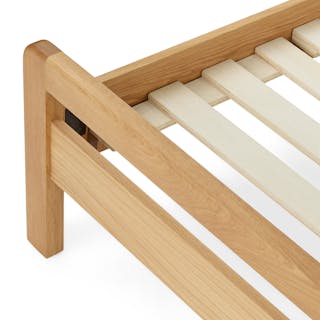 I love this bed and the bedside tables that go with it. Very sturdy, beautiful warm wood color (feels very mcm), and the overall design.