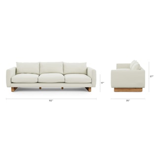 A gorgeous sofa with beautiful details. The wooden legs are sturdy and a beautiful design accent. The fabric is soft but durable and has a gorgeous texture. I l... More