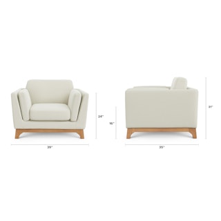 The Ceni armchair fuses classic, but modern, style with its neutral tone, plush seats, sleek track arms and clean lines. Its beautifully crafted wooden base enhances its strong and sturdy construction, while its plush seat cushions, backrests and armrests allow you to snuggle up comfortably. Pair the Ceni armchair with the Ceni loveseat or Ceni sofa for a perfect look.