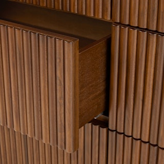 - Fluted wood panel drawers