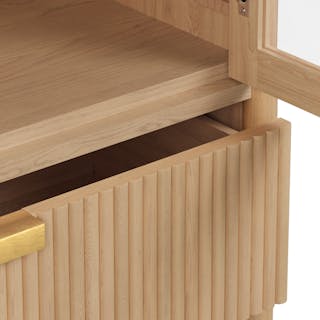 - Fluted wood panel drawers