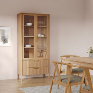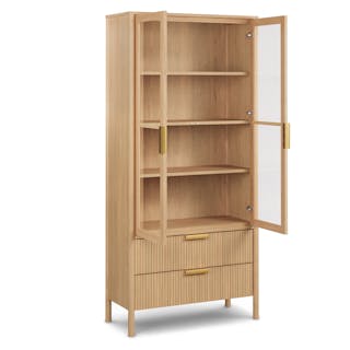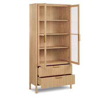 With brass handles, fluted drawers, and large statement glass doors, the Liv adds a touch of elegance to your dining room. Open and closed storage ensures ample space for whatever you need to stash away - linens, fine china, glassware, you name it. Whether you’re making a statement or just trying to organize that dining room chaos, Liv will be a calming presence at your next dinner party.