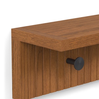 Meet Kouva. It's refined, well-balanced, and as aesthetically pleasing as the coats you'll hang from it. With six gunmetal knobs and a generous size shelf above, the Kouva offers a variety of storage space whilst its wooden tambour facade gives off Scandi-charm. Give your entryway the glow-up it deserves.