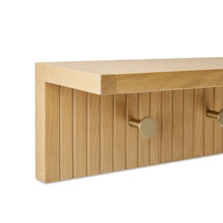 Meet Kouva. It's refined, well-balanced, and as aesthetically pleasing as the coats you'll hang from it. With six brass knobs and a generously sized shelf above, the Kouva offers a variety of storage, whilst its wooden tambour facade gives off Scandi-charm. Give your entryway the glow-up it deserves.