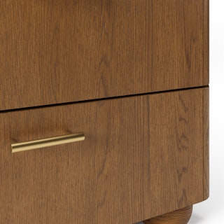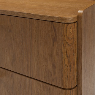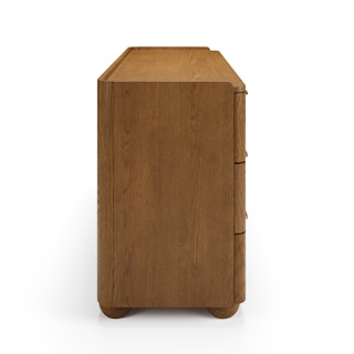 For those who appreciate a refined aesthetic without sacrificing functionality, the Miila features six spacious drawers outfitted with brass knobs, which finish your ample storage with a touch of sophistication. Along with its soft, rounded shape atop its spherical feet, the Miila is visually comforting, creating a calming bedside atmosphere. Charm, refinement, storage... what else could you want from a dresser?