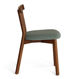 Minimal, soft, and compact, Ulka embraces its Scandinavian roots like a pro. With its curved backrest seamlessly blending into its rounded-edge frame, Ulka's signature cushy upholstery details sit cozily atop its subtly angled legs. Make the desire to remain at the table strong — even well past dinner's end.