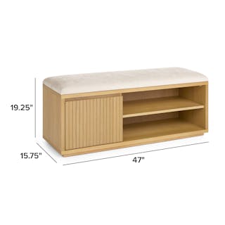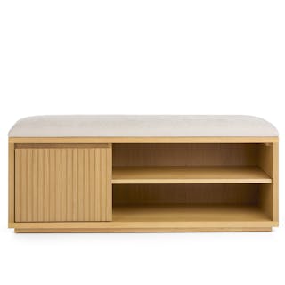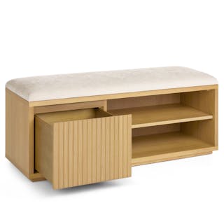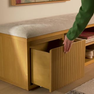 Meet Kouva. It's refined, well-balanced, and as aesthetically pleasing as the shoes you'll store in it. With a generously padded and upholstered seat cushion, Kouva offers plenty of entryway storage thanks to its tambour facade, soft-close drawer, and adjustable open shelving. Give your entryway the glow-up it deserves.