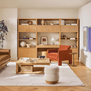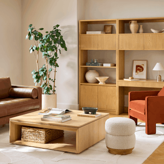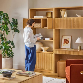 Do you have a wall just itching to be plastered with books, records, and character? Well, let us introduce you to our Kouva Essentials Bundle. Modern open-concept shelving with fluted wood fronts, plenty of closed storage, and a workspace to boot offer visual interest and practicality without being overly showy. Comprised of our Kouva Modular Wall Desk and Bookcase, this bundle is interesting, refined, and well-balanced. Bring your wall to life with Kouva.