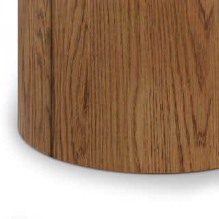 Nature's on your side. The organically shaped Baarlo Side Table is a sturdy ode to forest serenity. Designed with a solid oak wood top and a cylindrical oak veneer base, this side table brings a sense of tranquility to any lived space — bedroom, living room, or wherever your peaceful oasis may be.
