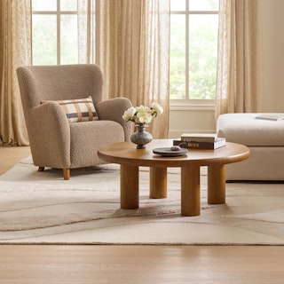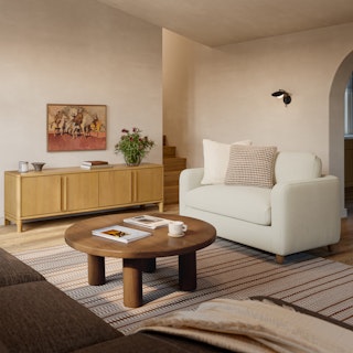 We are absolutely obsessed with this table! The design is simple yet bold, with the chunky cylindrical legs giving it such a modern, sculptural feel. The warm w... More