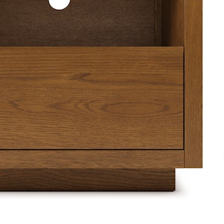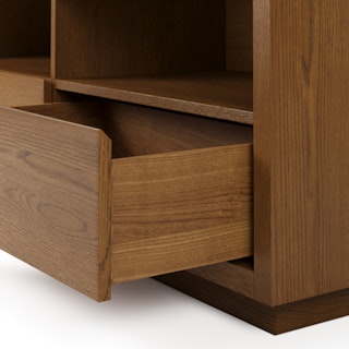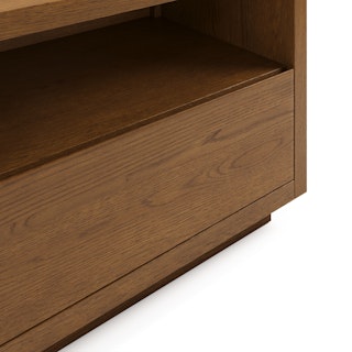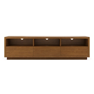 The strong, silent type. The Leif Media Unit embodies the classic tropes we associate with Scandinavian good looks: slender, blond, sturdy, impeccable posture. But it's not all good looks and clean lines; it's also soft-spoken and sensitive to your (storage) needs. Featuring three discreet soft-close drawers and three open cubbies topped with cable management cut-outs, it boasts some serious storage capacity. Set atop a subtle plinth base, the Leif Media Unit is the perfect way to keep an open, airy vibe without sacrificing storage space.