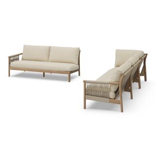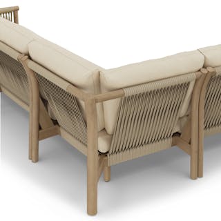 More than just a pretty face. The Rosa is built from solid eucalyptus wood, with dowelled legs and bracing. And the cushions — not only are they high density foam, they are upholstered with UV- and water-resistant fabric. With airy criss-cross weave details, the Rosa is as pretty as she is comfortable. And she is really, really comfortable.