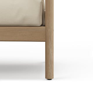 - Loose seat and back cushions upholstered in a UV and water-resistant Olefin fabric