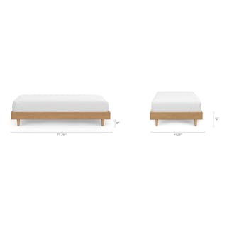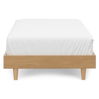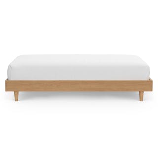 Caught you staring. The sleek, minimalist Basi bed frame meets its match in the Gatsby-era-inspired Almelo headboard: a perfect study in attractive opposites. The Almelo's foam-filled frame is upholstered in textural bouclé, and features twin shelves at just the right height for drinks, bedside reading, or a touch of ambient light. Paired with Basi’s high-quality veneer, sturdy plywood slats, and solid wood legs, the Basi x Almelo Bundle is built to support your dreams.