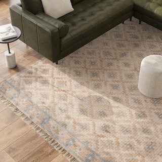 Une Naturale. Woven from a blend of jute, cotton, and wool fibers, Mattis features an intricate hand-woven pattern and a playful fringe finish. It serves as an elegant underlay for your coffee table or a striking showcase rug that allows you to pause and appreciate its natural composition.