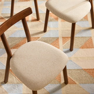 Handwoven by artisans in India, Hannes sports hues of blue, orange, and beige in a playful quilted chevron pattern. Topped off with a short fun fringe, Hannes is set to enchant your home with its charming Scandi vibes.