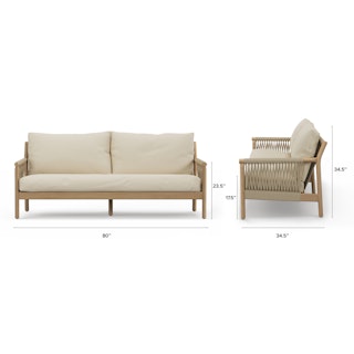 More than just a pretty face. The Rosa is built from solid eucalyptus wood, with dowelled legs and bracing. And the cushions — not only are they high density foam, they are upholstered with UV- and water-resistant fabric. With airy criss-cross weave details, the Rosa is as pretty as she is comfortable. And she is really, really comfortable.