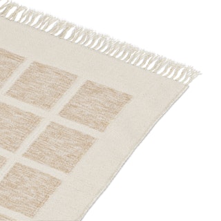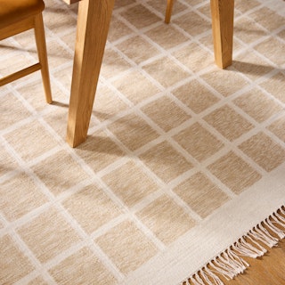 Soft, natural, and with a fun fringe finish, Norell has it all. Handwoven from a blend of wool and cotton, Norell's windowpane pattern in ivory and sand brings a pinch of Scandi design charm to your home decor. Combed through or left wild, Norell always emerges well-put together.
