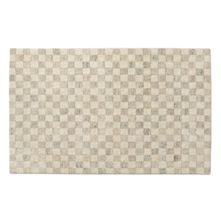 A style checkmate. The Murray rug’s checkered motif is hand tufted by artisans in India. This rug reflects gold, silver, and luminescent white as the light changes, making for an ethereal addition to your living space.
