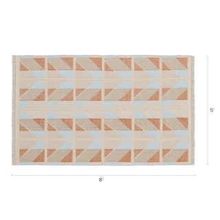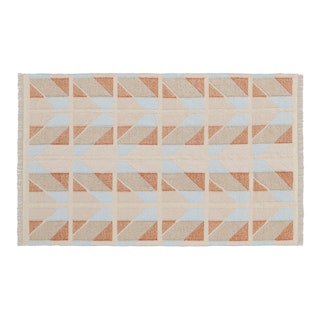 Handwoven by artisans in India, Hannes sports hues of blue, orange, and beige in a playful quilted chevron pattern. Topped off with a short fun fringe, Hannes is set to enchant your home with its charming Scandi vibes.
