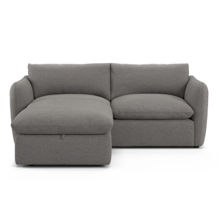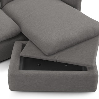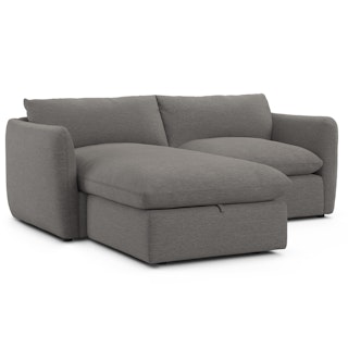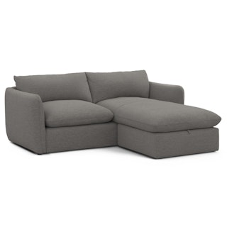 Cloud kingdom, population: you. The Leigh is our comfiest sofa ever, and now it's available as the comfiest hybrid of all: a reversible storage sectional. With a reversible chaise cushion and ottoman for left or right orientation, ample storage space within the ottoman, and stuffed with super-soft foam and duck down, the Leigh is your perfectly-sinkable sofa solution that still looks polished and poised.