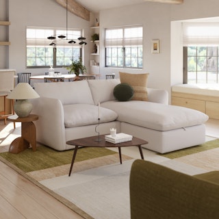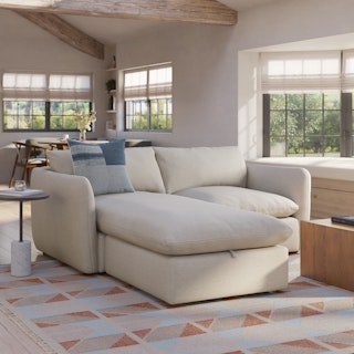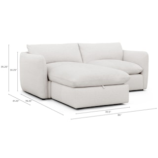 Cloud kingdom, population: you. The Leigh is our comfiest sofa ever, and now it's available as the comfiest hybrid of all: a reversible storage sectional. With a reversible chaise cushion and ottoman for left or right orientation, ample storage space within the ottoman, and stuffed with super-soft foam and duck down, the Leigh is your perfectly-sinkable sofa solution that still looks polished and poised.