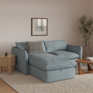 Cloud kingdom, population: you. The Leigh is our comfiest sofa ever, and now it's available as the comfiest hybrid of all: a reversible storage sectional. With a reversible chaise cushion and ottoman for left or right orientation, ample storage space within the ottoman, and stuffed with super-soft foam and duck down, the Leigh is your perfectly-sinkable sofa solution that still looks polished and poised.