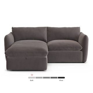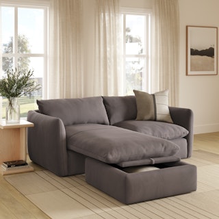 Cloud kingdom, population: you. The Leigh is our comfiest sofa ever, and now it's available as the comfiest hybrid of all: a reversible, storage, sleeper sectional—mouth full, we know. Stuffed with super-soft foam and duck down, the Leigh is your perfectly-sinkable sofa solution that still looks polished and poised. Upholstered with stain-resistant Hale fabric, you can rest easy.