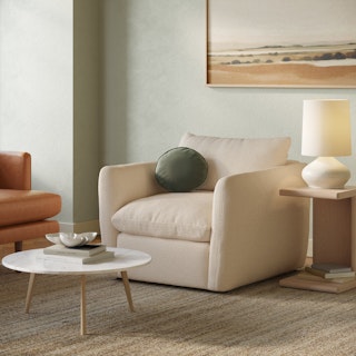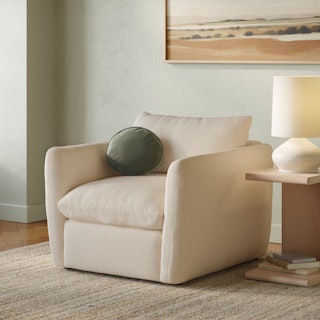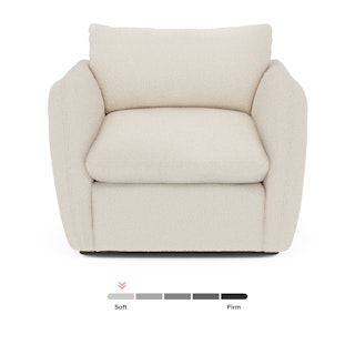 Cloud kingdom, population: you. The Leigh lounge chair is our comfiest lounger ever, with thoughtful details that make it the perfect place to put your feet up and nap/read/watch a show/snuggle/stare into the middle distance. Three seat styles mean you can build the perfect spot to crash, and gently angled armrests make it easy to relax without immediately falling asleep. Upholstered with our ever-so-soft bouclé fabric, the Leigh is here to help you to rest easy.